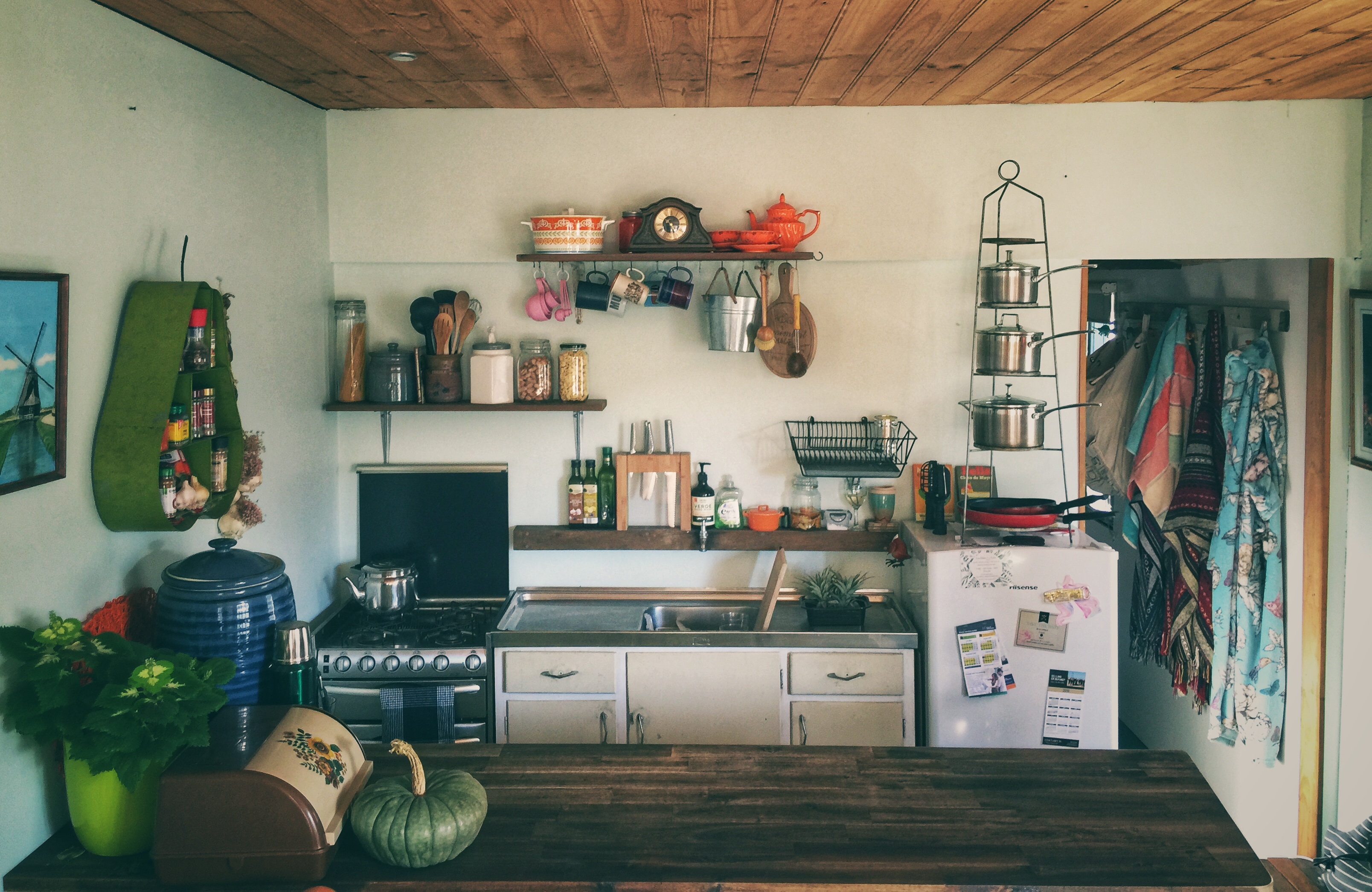 Our solar panel and battery system aren’t the biggest, greatest ones out there. This means there are some things we don’t have because we just can’t power them, even on sunny days. This includes kettle, toaster, tv, iron, heater, air conditioner, washing machine, dryer, wifi, the list probably goes on. Instead we use our gas stove, pot belly fire and just get by without the rest in our home. When its sunny we can charge up our phones, laptops and vacuum as well as listen to our radio, which we get pretty excited about.